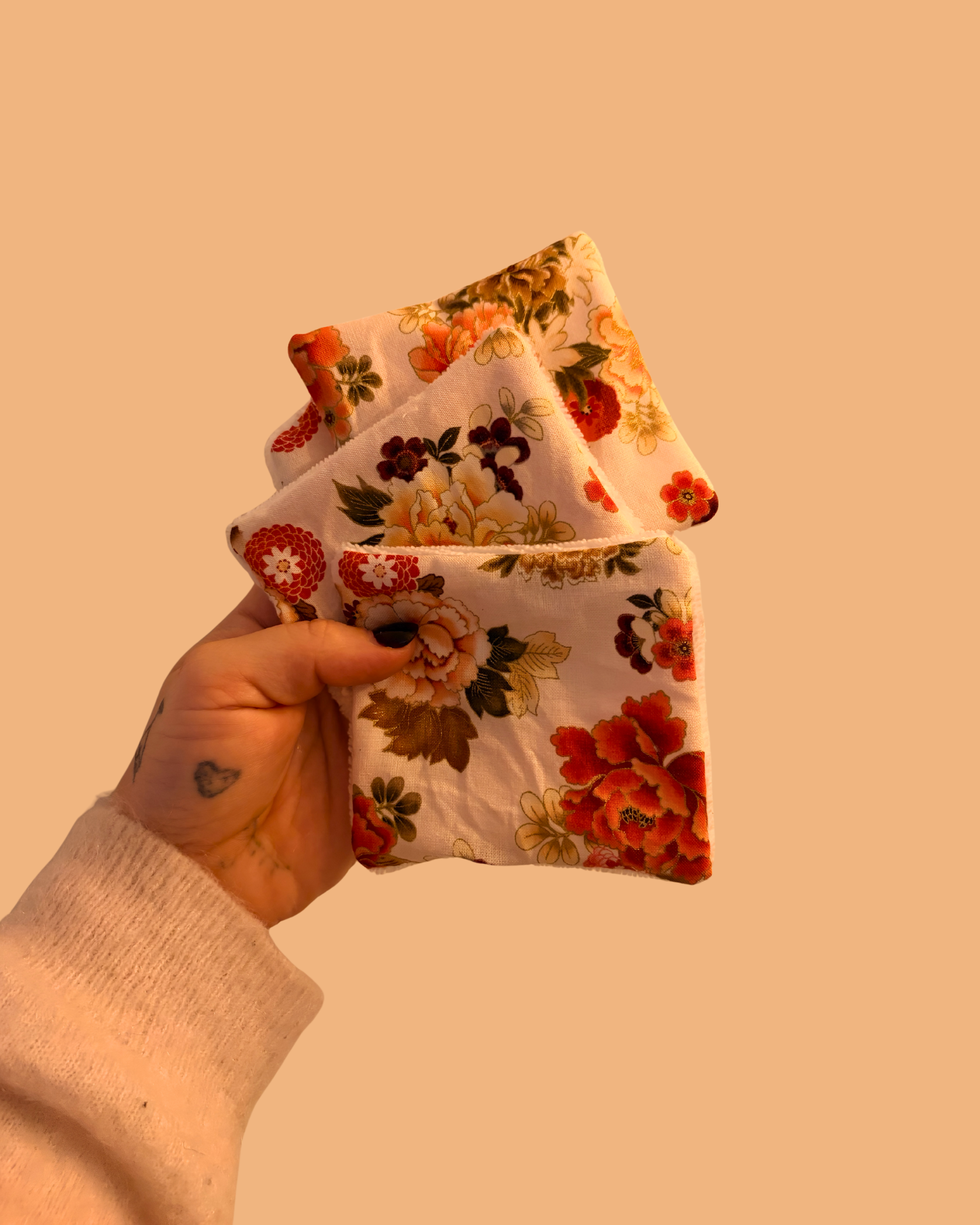 Apportez une touche de douceur et d’élégance à votre routine beauté avec nos cotons démaquillants réutilisables faits main.